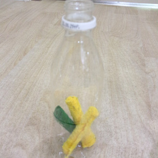 一つ目は、今までと同じようにペットボトルに棒状のフェルトを入れる玩具。